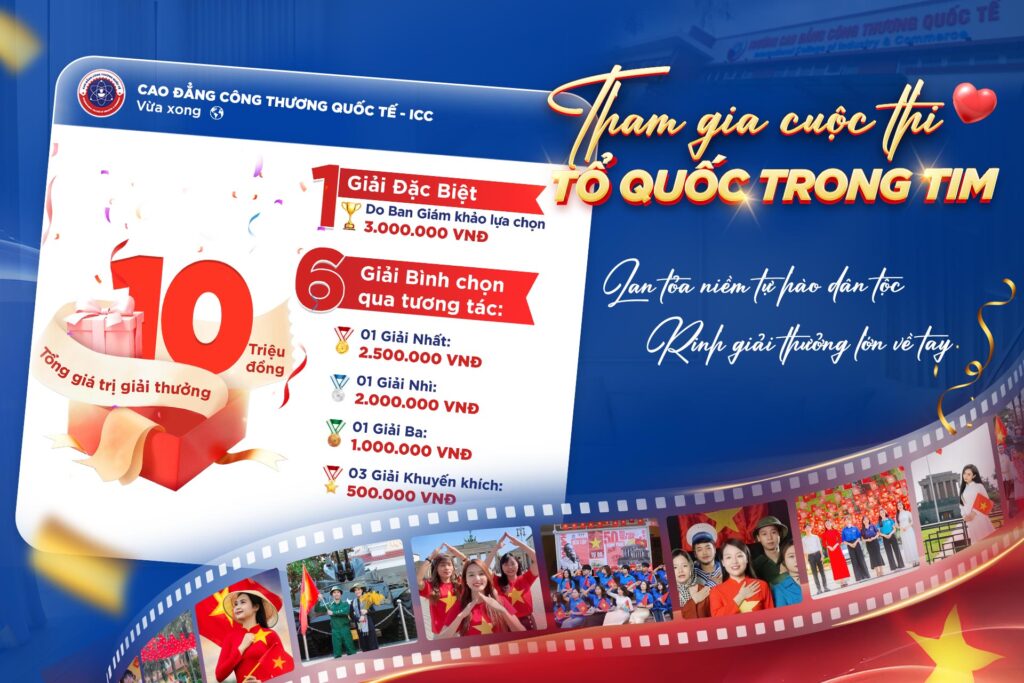Nhân dịp kỷ niệm 80 năm Cách mạng Tháng Tám và Quốc khánh 2/9 (1945 – 2025), Cao đẳng Công thương Quốc tế chính thức phát động cuộc thi ảnh/video với chủ đề “Tổ quốc trong tim”. Đây là sân chơi sáng tạo, ý nghĩa dành riêng cho sinh viên ICC, góp phần khơi dậy niềm tự hào dân tộc, tình yêu quê hương đất nước và tinh thần tự tôn Việt Nam trong thế hệ trẻ.