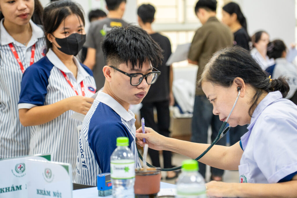 Buổi khám diễn ra trong không khí vui tươi, trật tự, với sự phối hợp nhịp nhàng giữa đội ngũ y tế, cán bộ Nhà trường và các bạn sinh viên.
