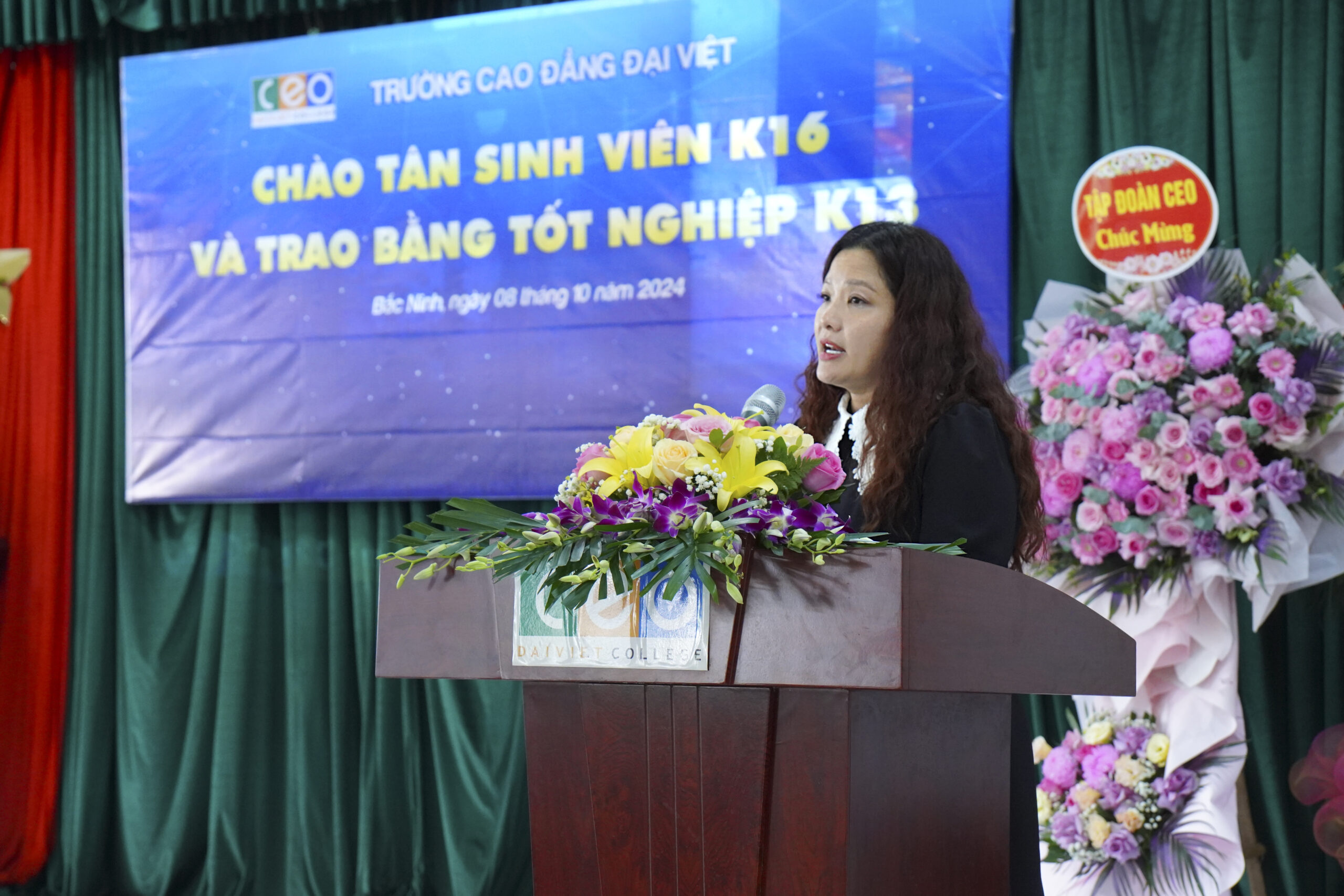 Phát biểu tại buổi lễ, Cô Nguyễn Khánh Thu – Phó Hiệu trưởng thường trực đã gửi những lời chúc tốt đẹp nhất tới các tân sinh viên khoá 16 và các tân cử nhân tốt nghiệp đợt 1 năm 2023.