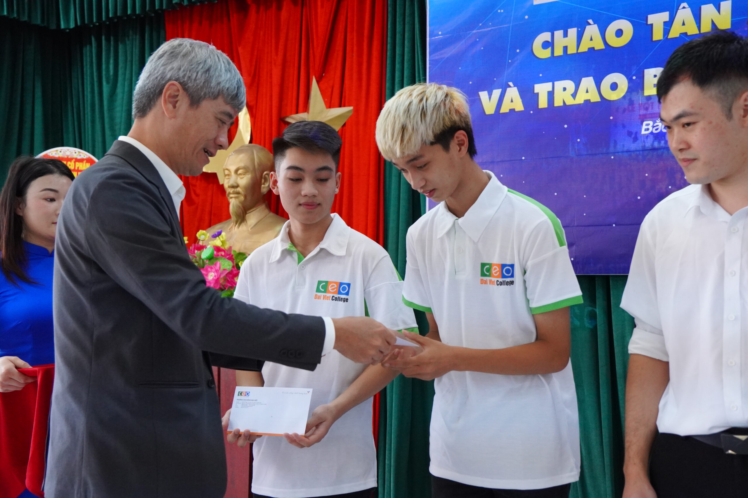 Cũng tại buổi lễ, ông Trần Đạo Đức – Phó Tổng Giám đốc tập đoàn CEO – đại diện Lãnh đạo Tập đoàn trao quà cho các em sinh viên có gia đình chịu ảnh hưởng nặng nề của cơn bão số 3 Yagi vừa qua, món quà nhiều ý nghĩa giúp các em yên tâm trong học tập và rèn luyện.