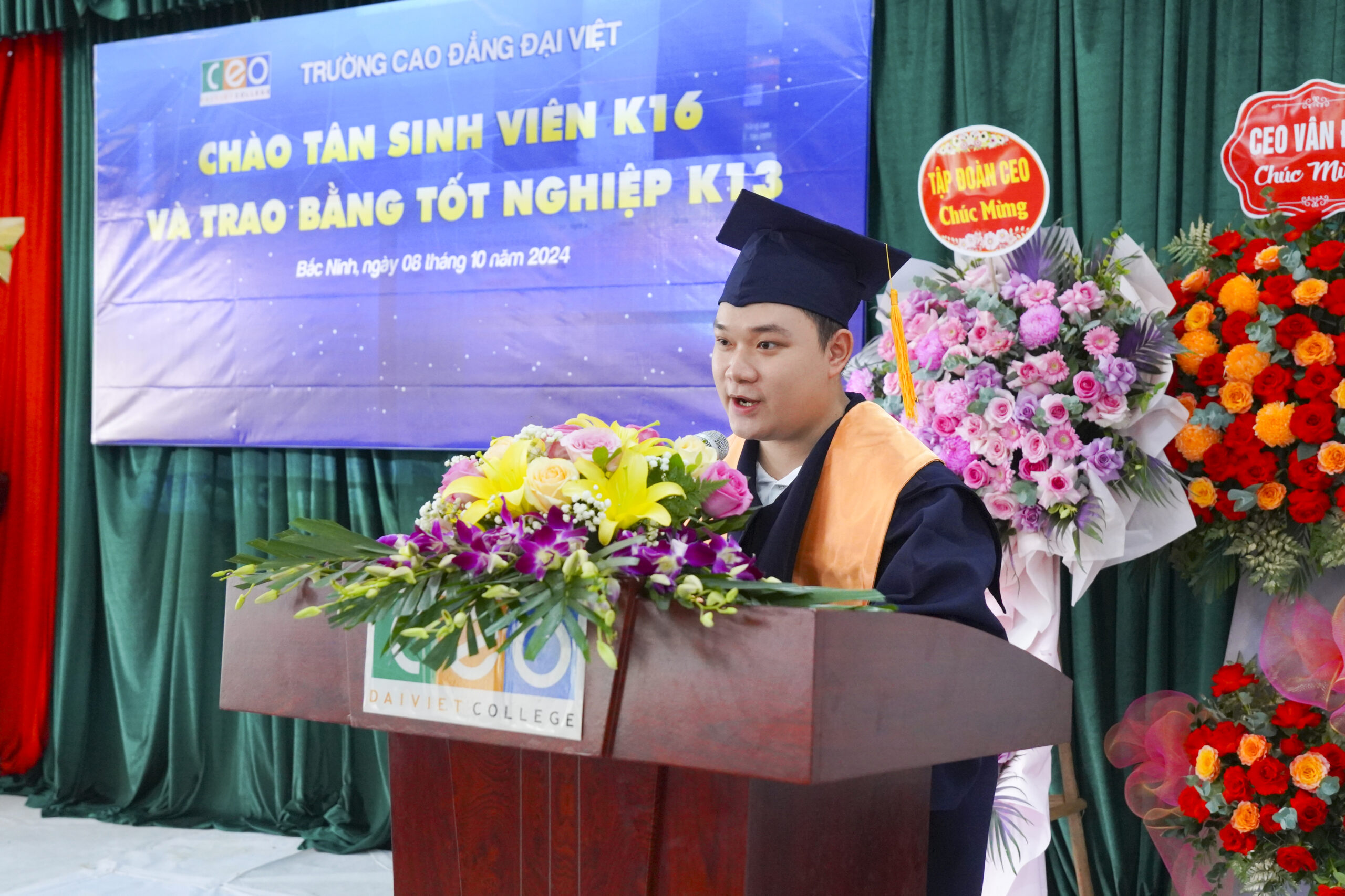 Tham dự Lễ Chào Tân sinh viên và Trao bằng Tốt nghiệp năm 2024, Trường Cao đẳng Công thương Quốc tế (ICC) vinh dự đón tiếp Đại diện ban lãnh đạo Tập đoàn CEO, đại diện các đơn vị thành viên trực thuộc Tập đoàn CEO, cùng các đơn vị đối tác của Trường: Công ty Cổ phần phát triển dịch vụ CEO, Công ty cổ phần hợp tác đào tạo giáo dục quốc tế Tín Phát… và đặc biệt là sự hiện diện của Quý phụ huynh các Tân sinh viên, Tân Cử nhân trường Cao đẳng Công thương Quốc tế (ICC).