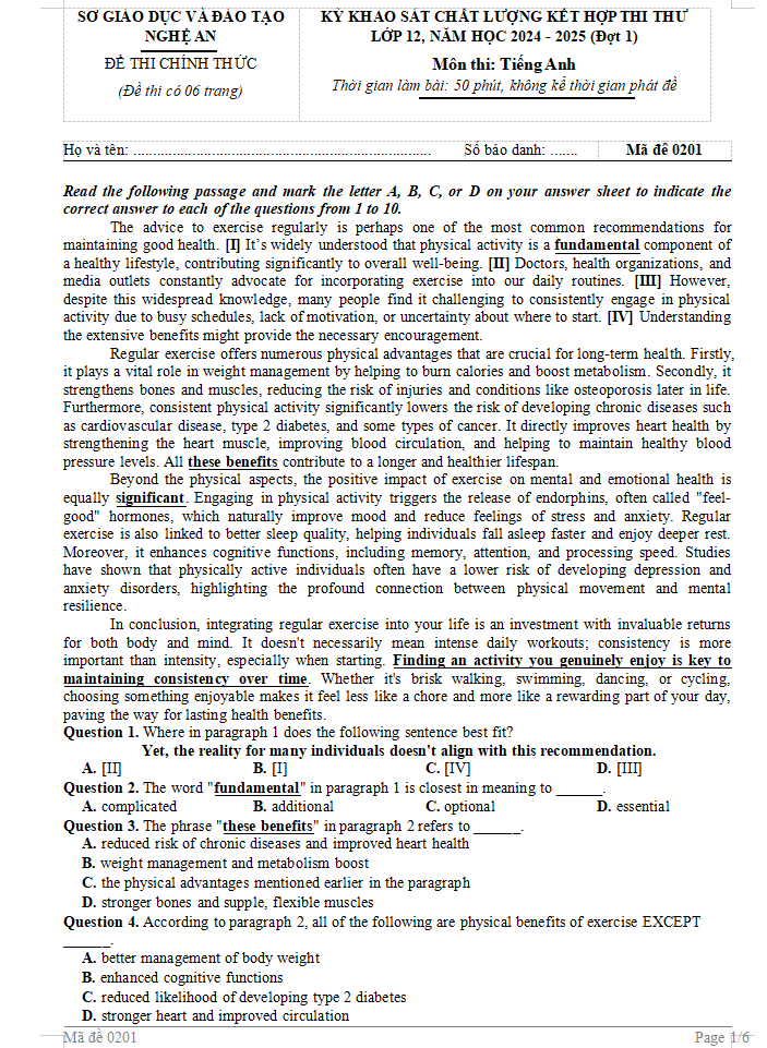 Đề thi thử THPT môn Tiếng Anh được Sở GD-ĐT Nghệ An xây dựng để khảo sát chất lượng học sinh...