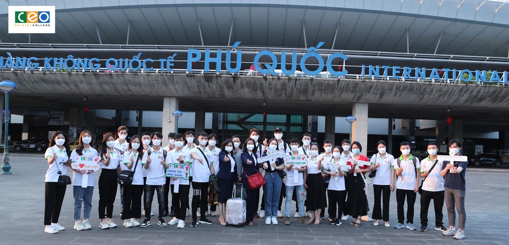 Sinh viên trường Cao đẳng Công thương Quốc tế tại sân bay Phú Quốc
